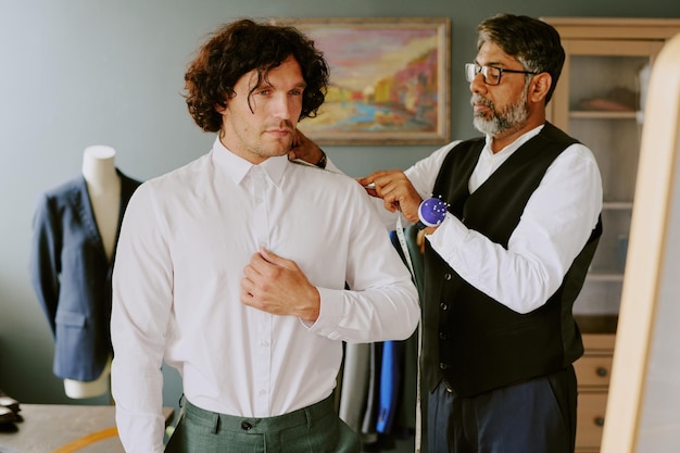 Soy César Calvo, tu sastre de confianza. Confecciono cada prenda a medida, cuidando los detalles y entendiendo lo que buscas. Combinando técnicas clásicas con un enfoque actual, te ayudo a reflejar tu estilo personal. Aquí encontrarás un servicio exclusivo, sin prisas y centrado en ti.